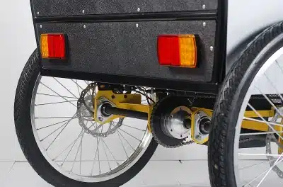 Your new electric pedicab trike will come with a new style of stronger spokes and an enforced frame in black color.